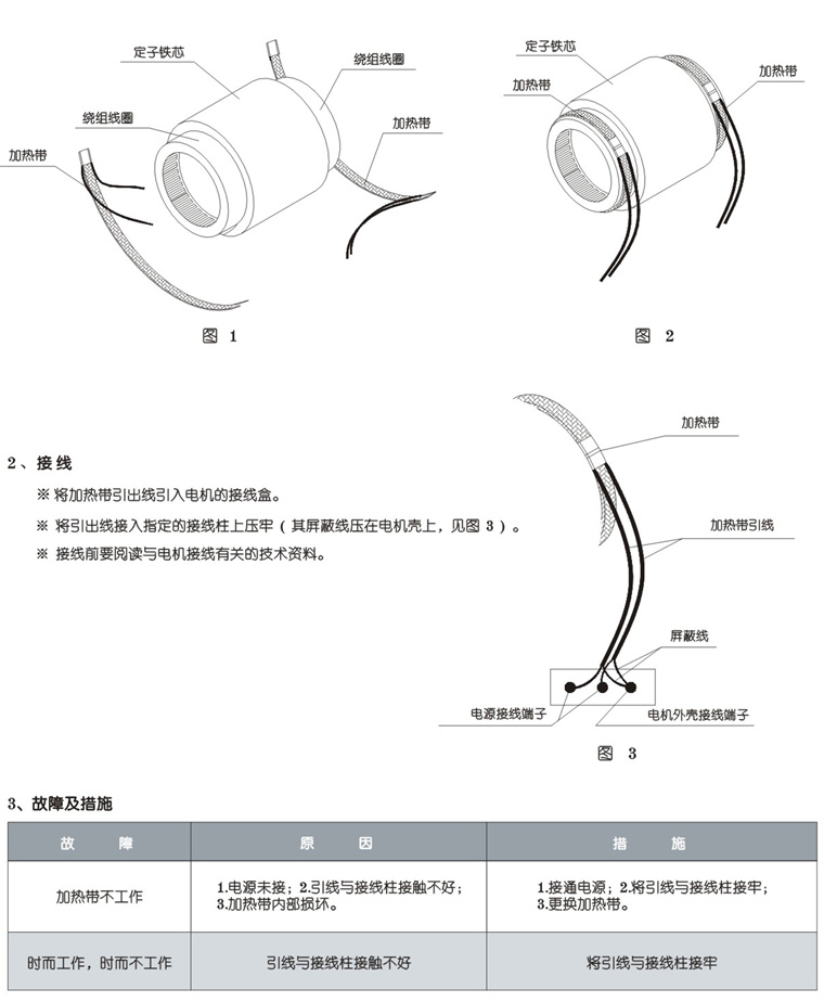 3、將加熱帶置于定子繞組端部適當?shù)奈恢? 使加熱帶與繞組接觸良好,電源線接在接線盒內(nèi)。P0G脈澤電子(MASERAC) - 領先的機電部件、電子元件、傳感器生產(chǎn)銷售服務商
