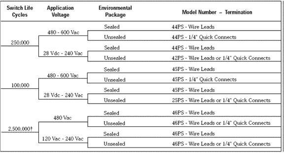 Life at rated Current: 100,000 Cycles (25/45PS)250,000 Cycles (42/44PS)2,500,000 Cycles (46PS)† yBX脈澤電子(MASERAC) - 領先的機電部件、電子元件、傳感器生產銷售服務商