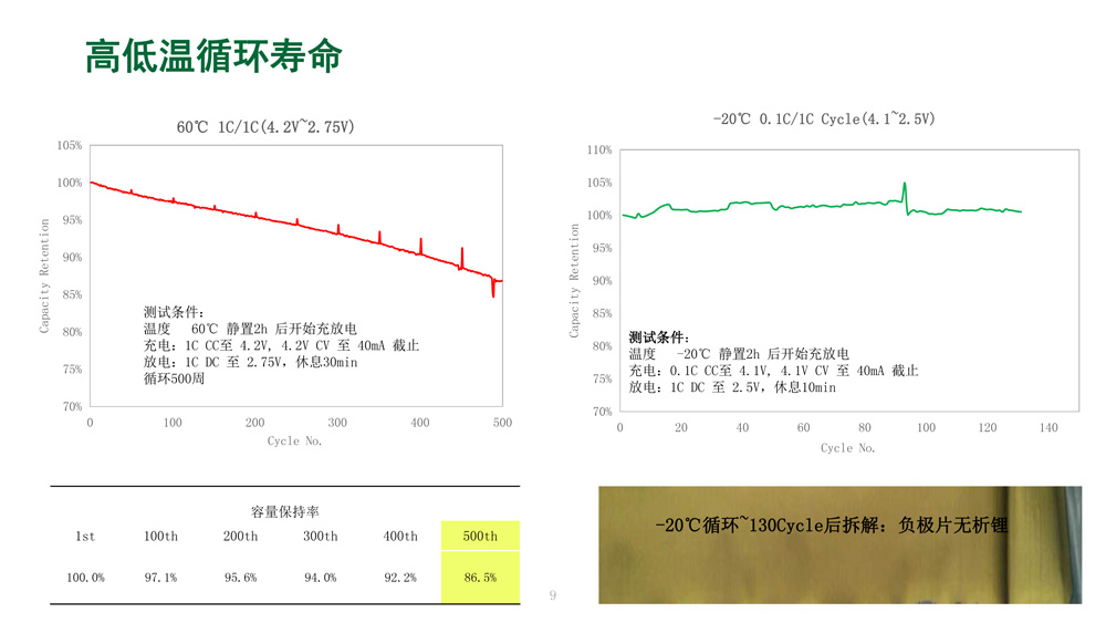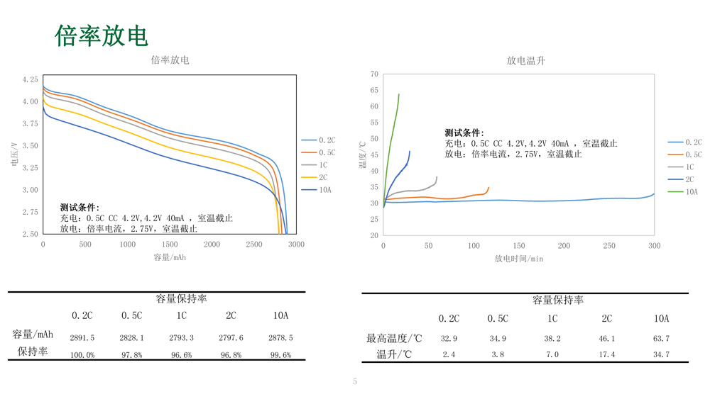 | 此款電池可以在零下-40度~高溫+85度的環(huán)境中,正常放電。電池容量最小值2800mAh~最大值2900mAh,典型電壓3.6V,工作電壓2.75V~4.2V。80度 1000小時(shí)候存儲(chǔ)可回復(fù)容量>85%,壽命>500次。 |