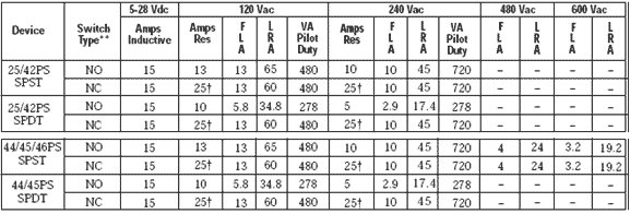 Life at rated Current: 100,000 Cycles (25/45PS)250,000 Cycles (42/44PS)2,500,000 Cycles (46PS)† yBX脈澤電子(MASERAC) - 領先的機電部件、電子元件、傳感器生產銷售服務商