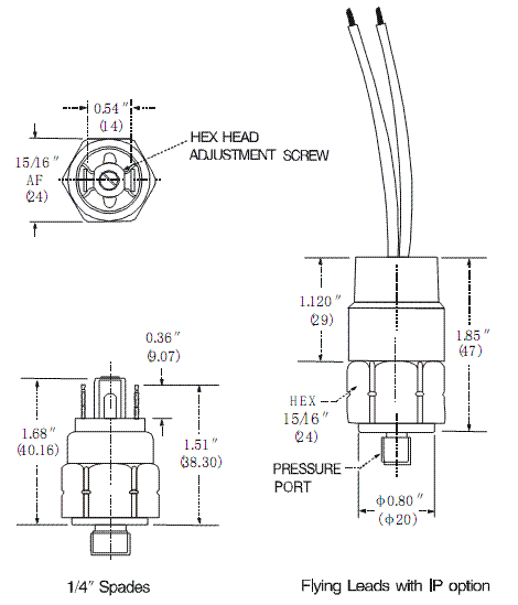 捷邁Gems PS83-OEM微型真空壓力開關(guān)外型尺寸: